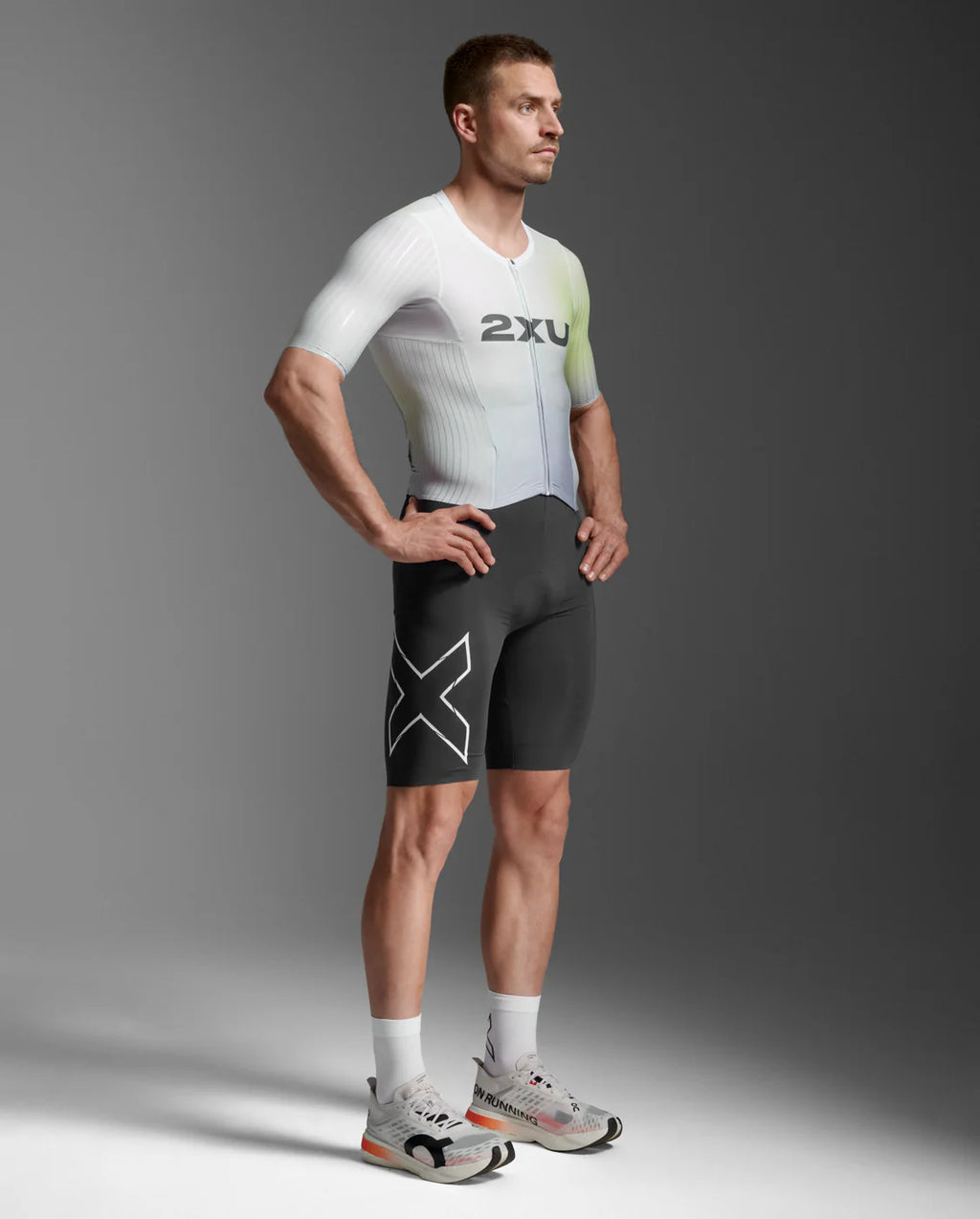 Der Light Speed React Sleeved Trisuit nutzt Erkenntnisse aus Tests mit Elite-Botschaftern und Untersuchungen zu Tour de France-Skinsuits und bietet außergewöhnliche Aerodynamik, hitzebeständige Technologie und unübertroffene Muskelstabilisierung, um die ultimative Waffe für Langstreckenrennen zu sein.