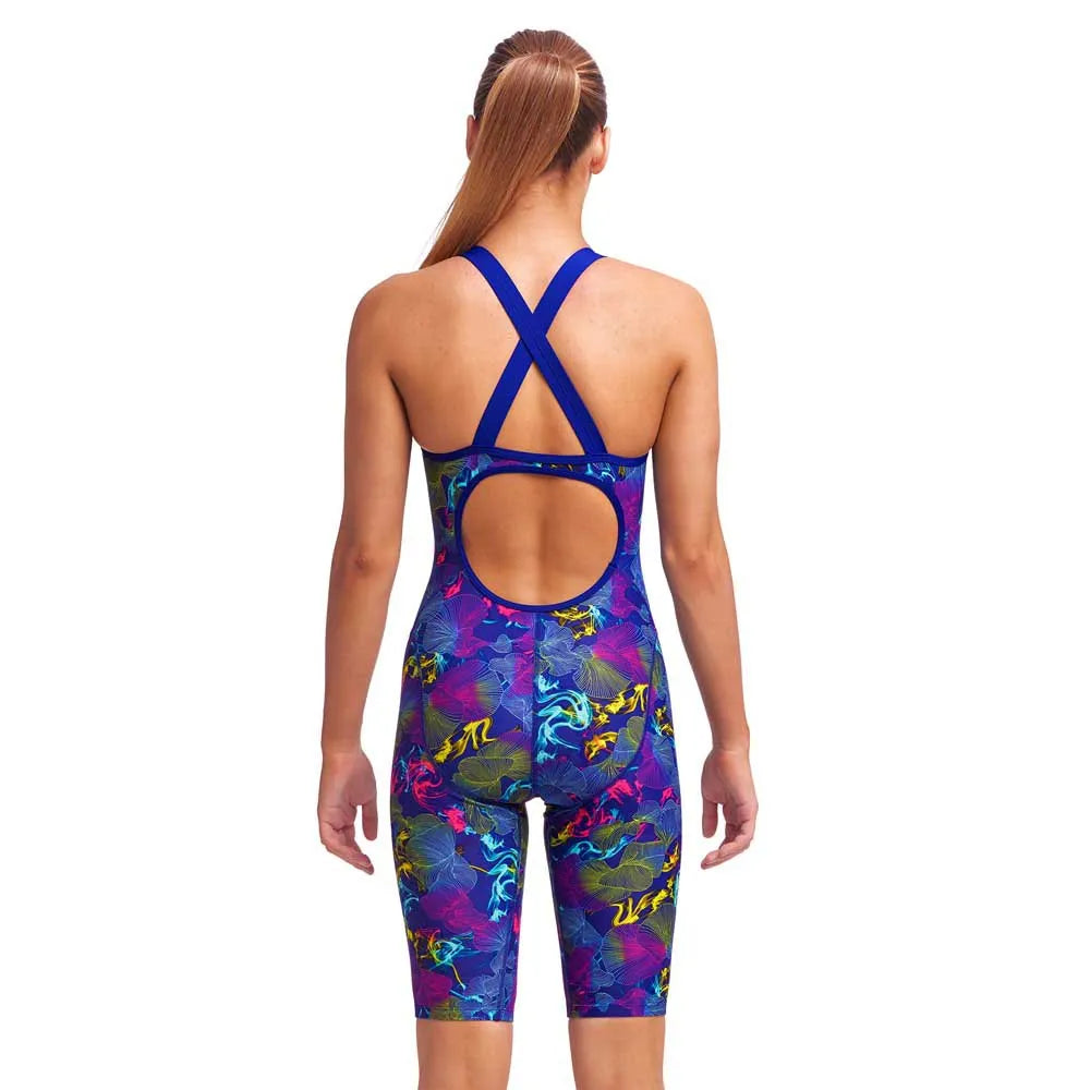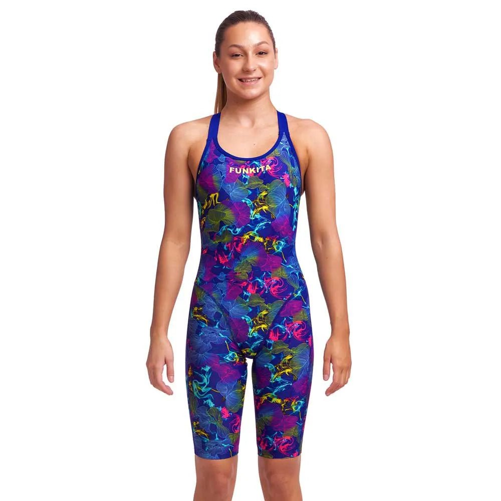 Fast Legs ist der perfekte Funkita Trainingsanzug mit voller Abdeckung der Oberschenkel und breiten elastischen Schulterträgern für außergewöhnlichen Komfort und Halt bei deinem Schwimmtraining. Die Paneele sorgen für einen perfekten, knitterfreien Sitz am Körper. Für eine engere Passform beim Rundenschwimmen eine Größe kleiner als die normale Funkita-Größe wählen.