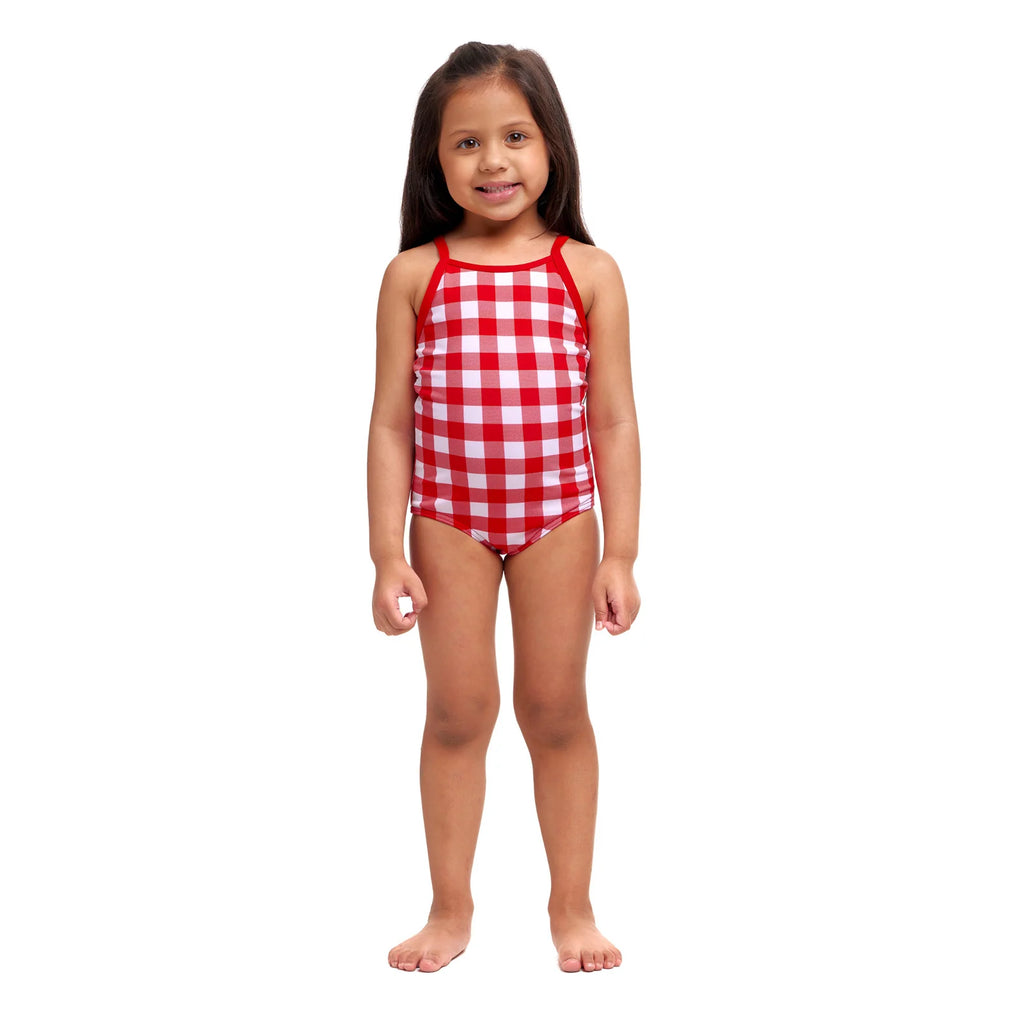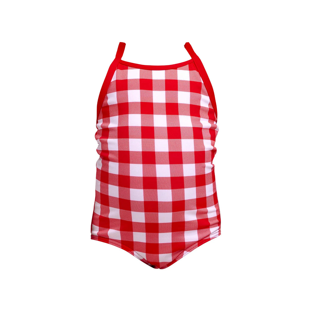 Way Funky Funkita, Toddler Girls Printed One Piece Red Checker, Badeanzug, Kinder